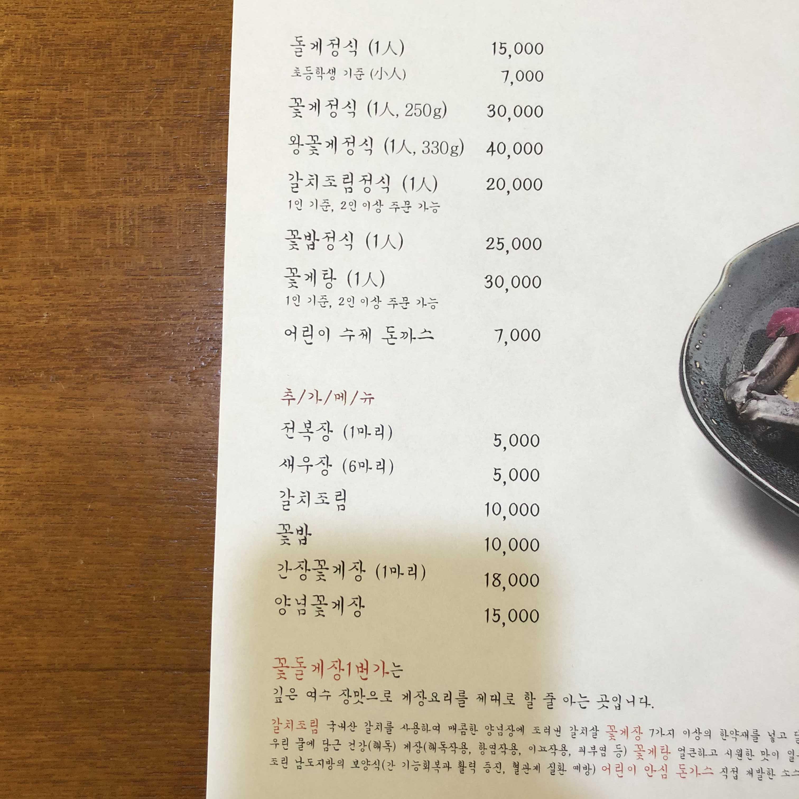 꽃게정식 2인분을 주문했어요.