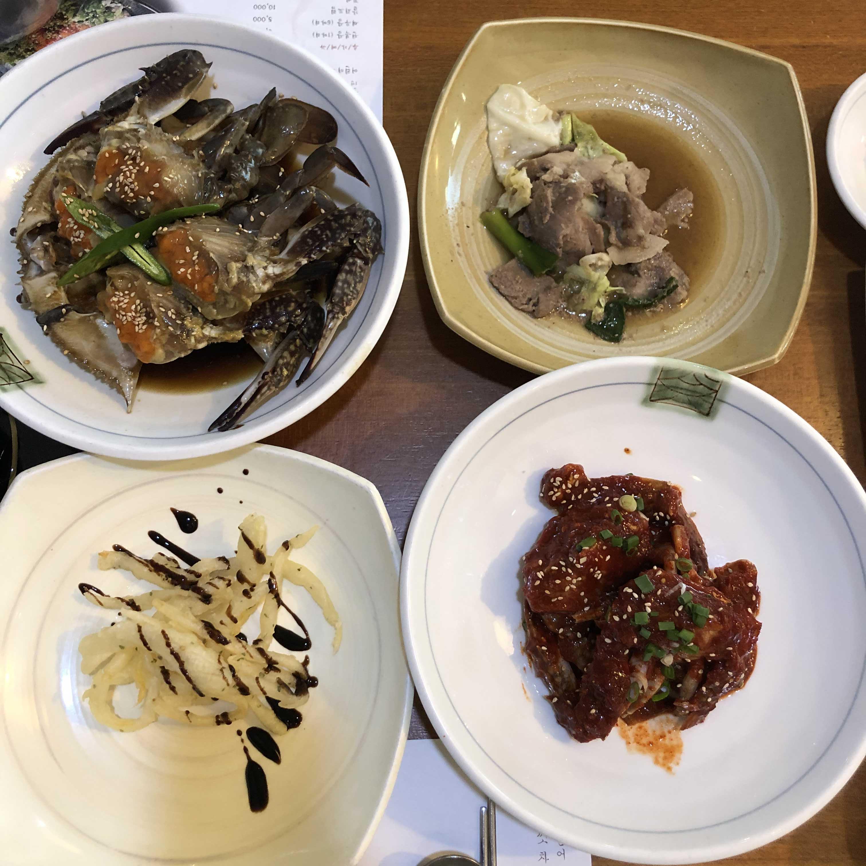 간장게장, 양념게장이 나오고 소불고기 양파튀김 등이 나와요.