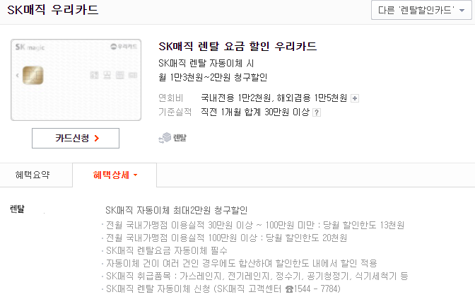 그리고 SK 매직 할인되는 신용카드 종류가 여러 가지 있는데요.
