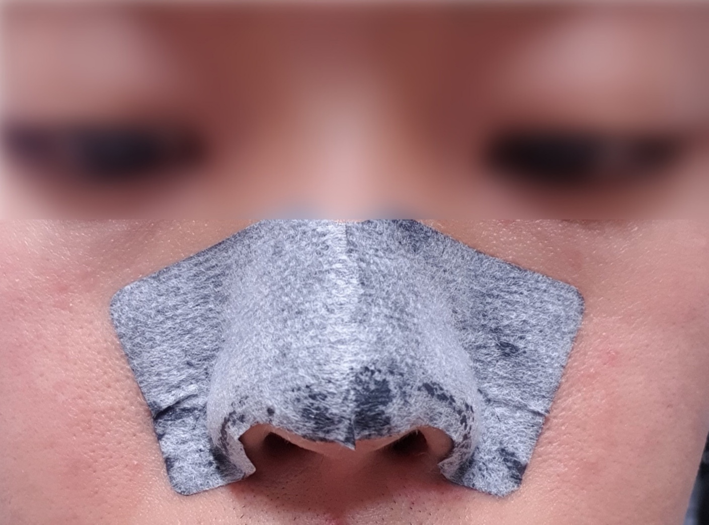 제 경우엔 보통은 끝부분이 뜨는경우가 많았는데 해서린 코팩은 이렇게 코에 잘 밀착되었어요. 실수로 손을 안닦고 붙여서인지 시트가 살짝 젖었는데 손을 닦고 붙여야 합니다.